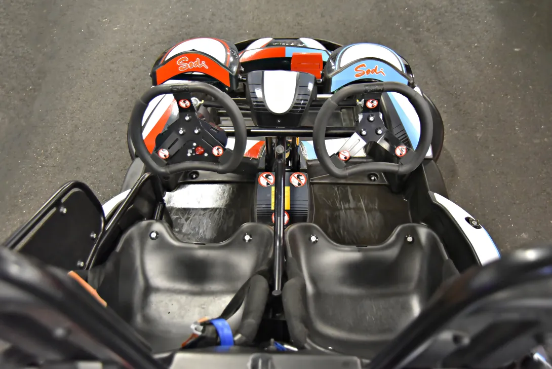 Joten tiedustelusoitto Kart in Clubille, olisiko heidän kaikkien neljän sisäratansa vakiotarjonnassa oleva 2-paikkainen kartingauto vapaana? Olihan se. 20 eurolla kuka tahansa pääsee kokeilemaan 2-paikkaista sisärata-autoa