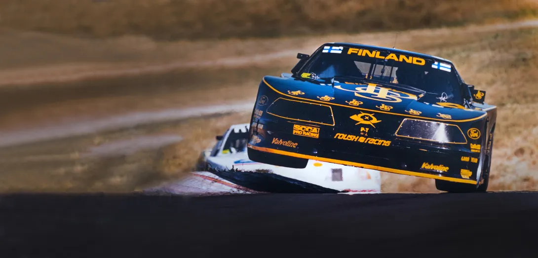 – Mustang oli erittäin hyvä auto ajaa. Tasapainoinen ja vakaa. Pienemmällä moottorilla varustettuna se painoi 1 050 kg, jota noin 700 hv V8–moottori kuljetti kovaa. Se oli hurjaa hommaa etenkin epätasaisilla katuradoilla. Järki piti olla mukana, kun ajoimme betoniseinien välissä, Lappalainen muistuttaa.