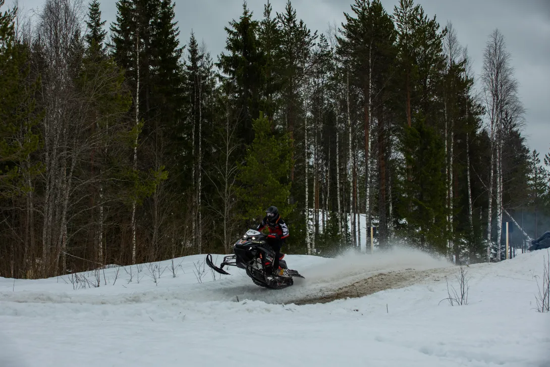 - Tässä välissä olen ajanut snowcross-kisoja. Nyt oli väliviikonloppu niistä, niin halusin tulla kokeilemaan sprinttejä. Mukavaa oli, vaikka tuntuuhan tämä hurjemmalta kuin crossi, kun pitää ajaa kovaa puiden seassa.