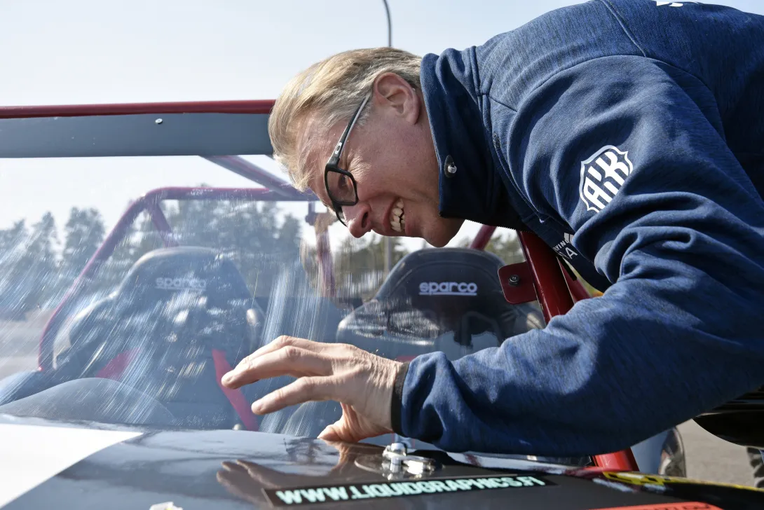 – Istuimia voisi yrittää tipauttaa alemmaksi. Nyt ohjauspyörä on liikaa sylissä, Järvilehto maistelee ajoasentoa hakiessaan.