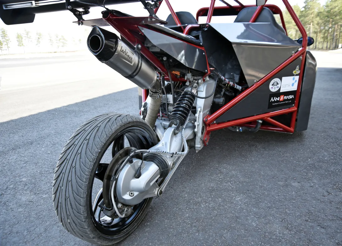 Alastarossa 3Wheeler on ensimmäistä kertaa koeajossa asvalttiradalla. Tätä ennen sillä on ajettu vain muutama kilometri piha-alueilla ja todettu, että kaikki toimii.