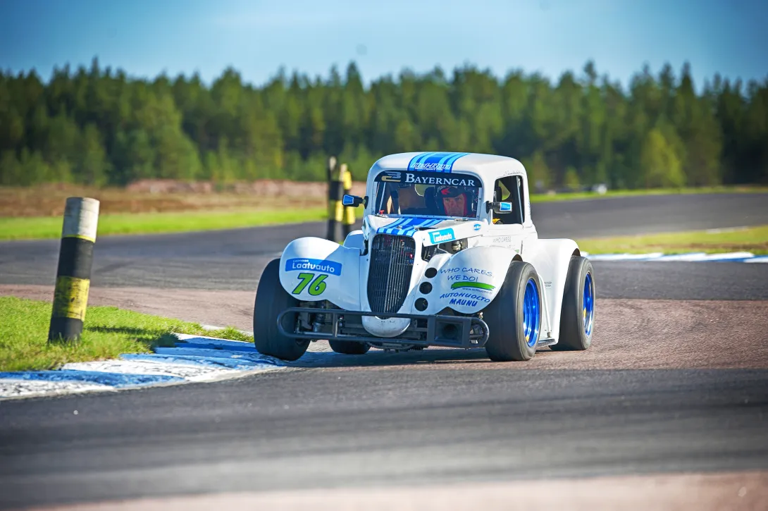 – Oletin, että se olisi puskenut enemmän. Aikoinaan Porvoossa tällainen aliohjasi aivan älyttömästi. Suoraan sanottuna pidin Legendsiä silloin hirveänä, mutta ehkä katurata ei kuitenkaan ollut kaikesta sopivin tällaiselle ”Kemppi-lukolla” varustetulle autolle. Oikealla moottoriradalla ajaminen toi Legendsistä paljon paremman fiiliksen, hän sanoo.