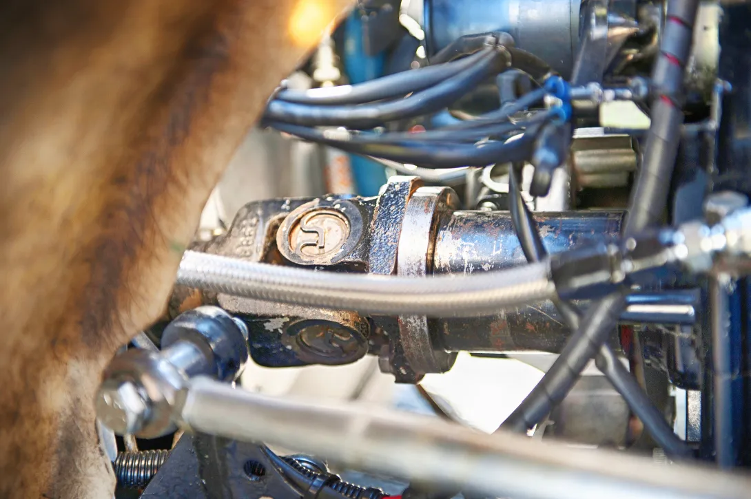 Edessä olevan moottorin teho välitetään jaksottaisella 5-nopeuksisella moottoripyörän laatikolla ja 100-prosenttisella tasauspyörästön lukolla takapyöriin.