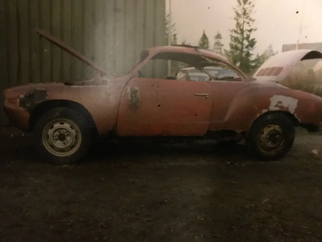Sittemmin Karmann Ghia päätyi Haapavedelle, jossa eräs paikallinen mies aloitti kunnostusprojektin 1979, nimenomaan aloitti. Kun Mäenpää löysi ja pelasti auton 1991, häntä odotti tällainen näky: