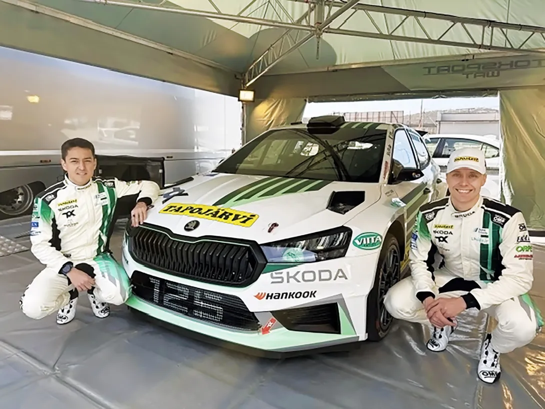 Toksport WRT:n Emil Lindholm (oik.) ja Gabriel Morales, Škoda Fabia RS Rally2. Kuva Sebateam.